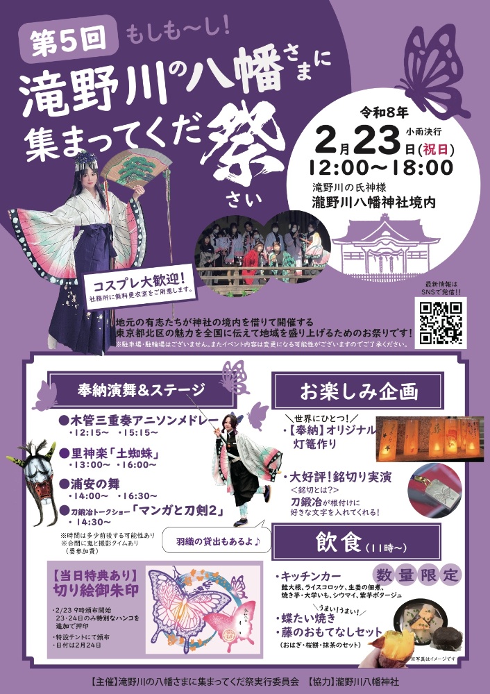 2026年2月23日(月祝)木管三重奏 12:15- / 15:15-(各15分間)瀧野川八幡神社境内※入場無料